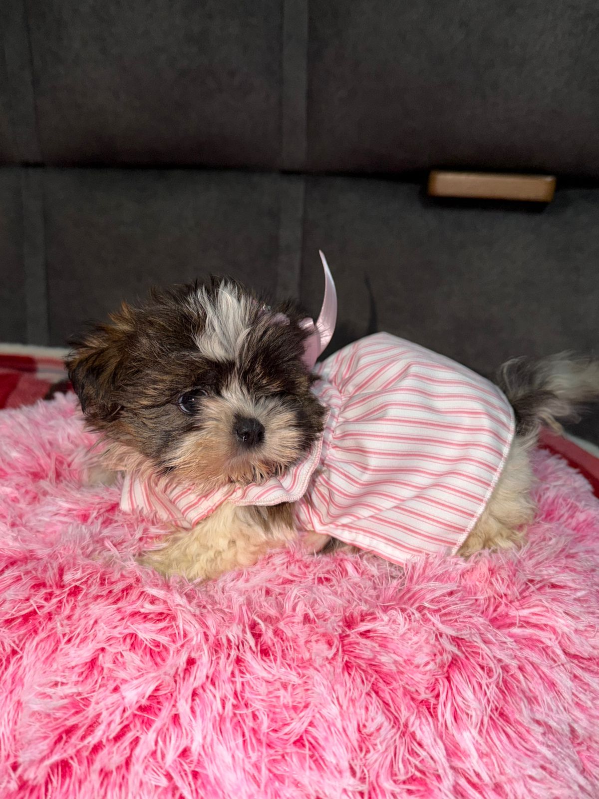 Este hermoso cachorro proviene de madre y padre Shihtzu y ha sido criado de forma saludable y cuenta con todas sus vacunas.