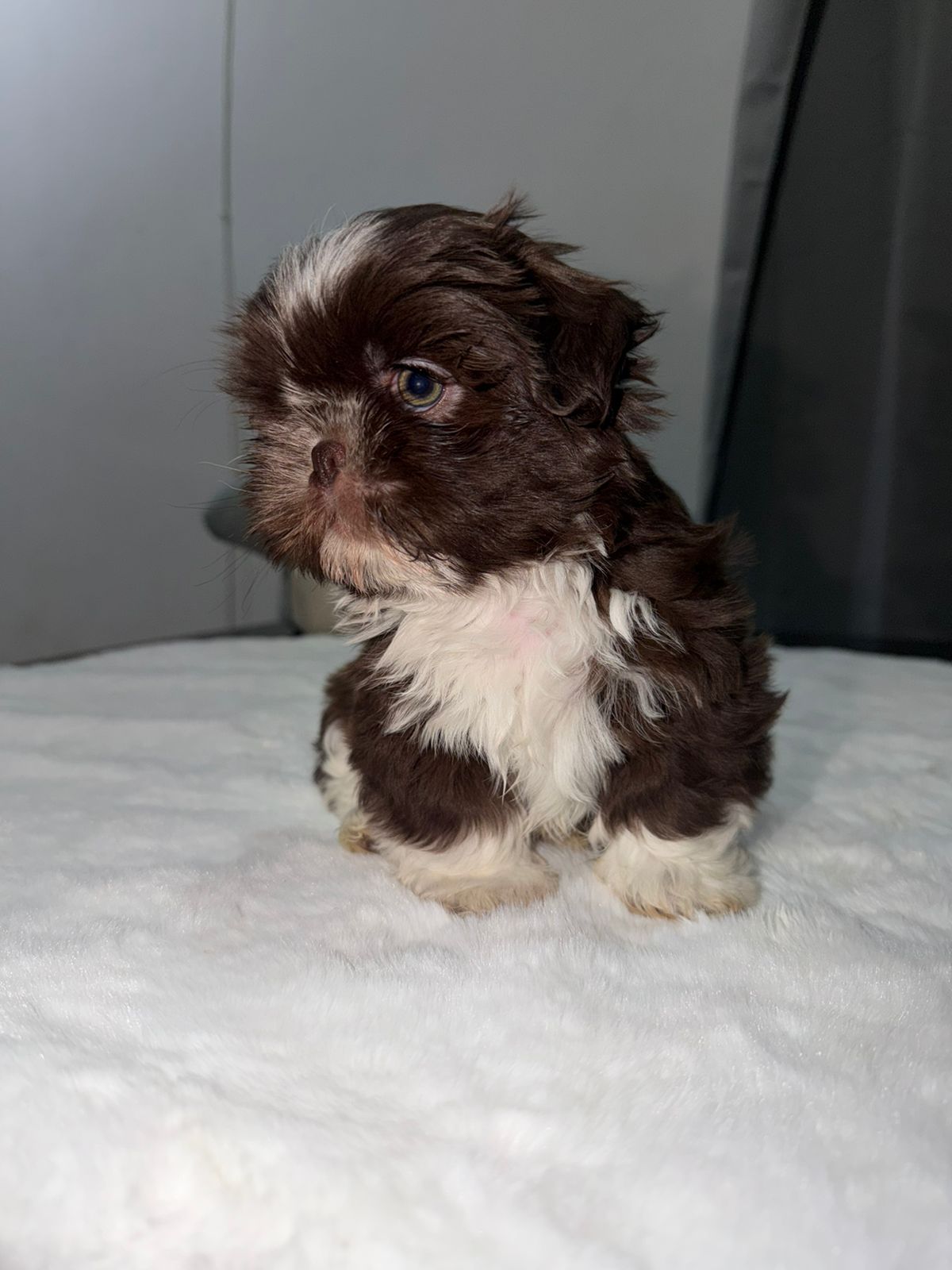Este hermoso cachorro proviene de madre y padre Shihtzu y ha sido criado de forma saludable y cuenta con todas sus vacunas.